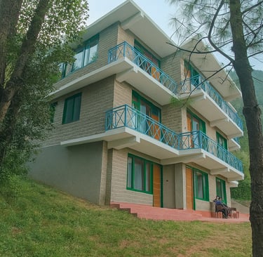 Welcome to Himaja Retreat, a family-run boutique stay perched on a quiet hilltop surrounded by apple orchards, pine forests, and panoramic views of Rohtang Pass, the Beas River, and Jogini Waterfalls.